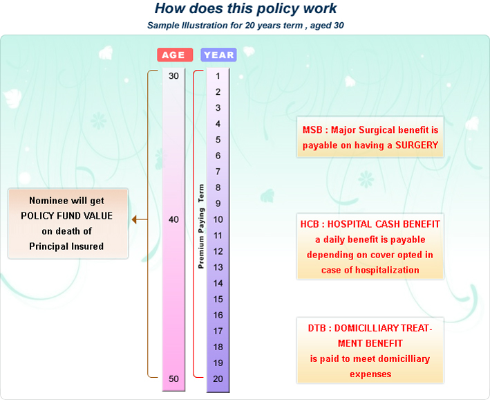 It is a unit linked plan where the premium paid by the PI is utilized to purchase units. The fund thus developed (subject to charges & deductions) provides health cover to the family